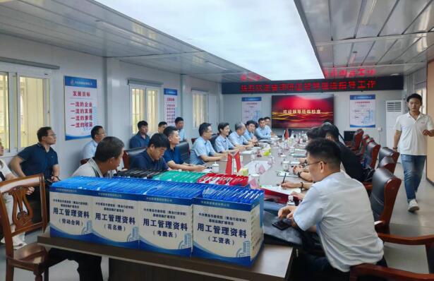 中啟膠建集團有限公司董事長、總經(jīng)理郭道盛對省人社廳調研組及各級主管部門領導的到來表示熱烈歡迎,對蒞臨開展調研指導工作的各位專家表示由衷的感謝。省人社廳勞動監(jiān)察處處長楊衛(wèi)華強調,省人社廳及相關部門高度重視迎接國務院2023年度保障農民工工資支付考核工作,本次國務院考核組至青島考核的第一站極有可能就是中啟膠建集團承建的項目,考核標準以及考核要求會更加嚴格,中啟膠建集團作為青島市建筑業(yè)重點企業(yè),要高度重視,積極籌備。