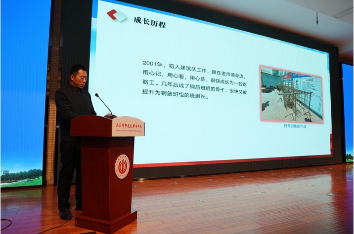 會(huì)上,張發(fā)以“匠心筑夢(mèng)、技能成才”為主題進(jìn)行宣講,以個(gè)人成長(zhǎng)經(jīng)歷為例,闡述了工匠精神的深刻內(nèi)涵。通過(guò)精彩的宣講活動(dòng),讓與會(huì)人員更加深切體會(huì)到“行業(yè)無(wú)分貴賤,匠心卻見(jiàn)高低;歷經(jīng)千錘百煉,方能匠心獨(dú)運(yùn)”?;顒?dòng)現(xiàn)場(chǎng)與會(huì)人員還一同觀看了我省住建代表團(tuán)參加“2024年全國(guó)住房城鄉(xiāng)建設(shè)行業(yè)職業(yè)技能大賽”風(fēng)采展示紀(jì)錄片,參觀了山東古建筑構(gòu)件博物館。